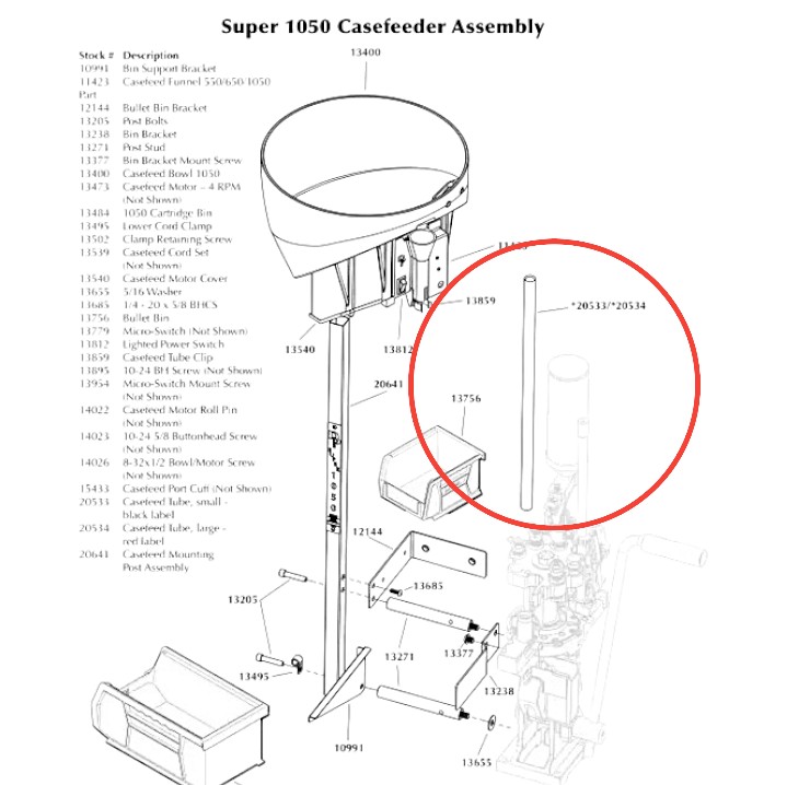 Replacement Dillon Precision Standard Size Case Feed Tube for the RL550, XL650, XL7850, Super 1050.