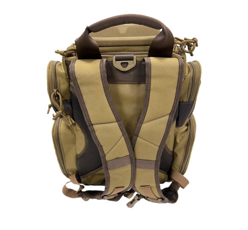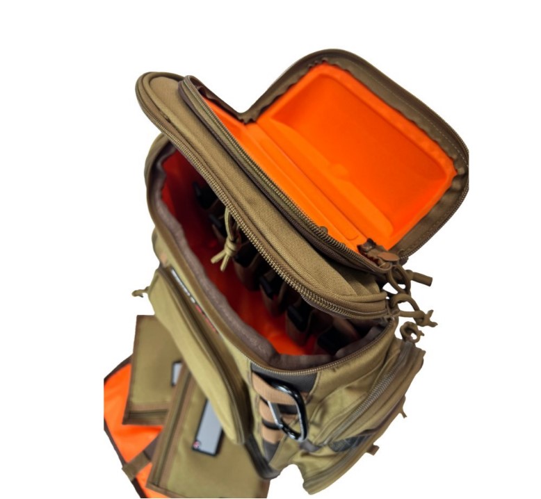 Designed with practicality in mind, the backpack includes a dedicated EVA hard pocket at the top for quick access to safety glasses upon arrival at the range. Security is paramount, with lockable eyelets on the main upper and lower compartment zippers, offering the option to restrict access with a small padlock (not included).