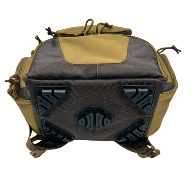 A convenient pull-out rain cover tucks into an upper compartment, ensuring this backpack is prepared for rainy days at the range. Enhanced with large rubber pads on the base, it stays elevated from the ground, keeping it clean and dry.
